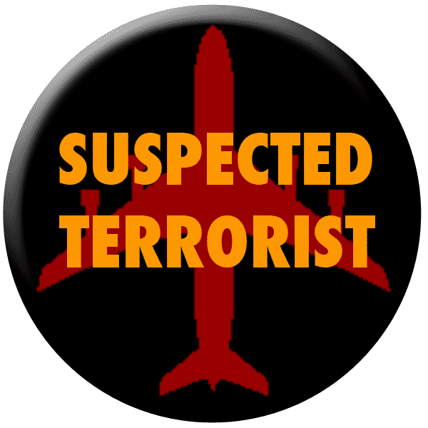 I decided to revamp the Suspected Terrorist button created by political activist Emi Koyama and popularized by civil disobedient John Gilmore. I'm not much of an artist but this seemed like something I can do. Hopefully the result isn't too bad.