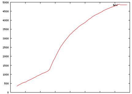 Update: Here’s a graph of the number of signatures over time. Each tick is about 80 minutes (the spike is Slashdot, of course):
